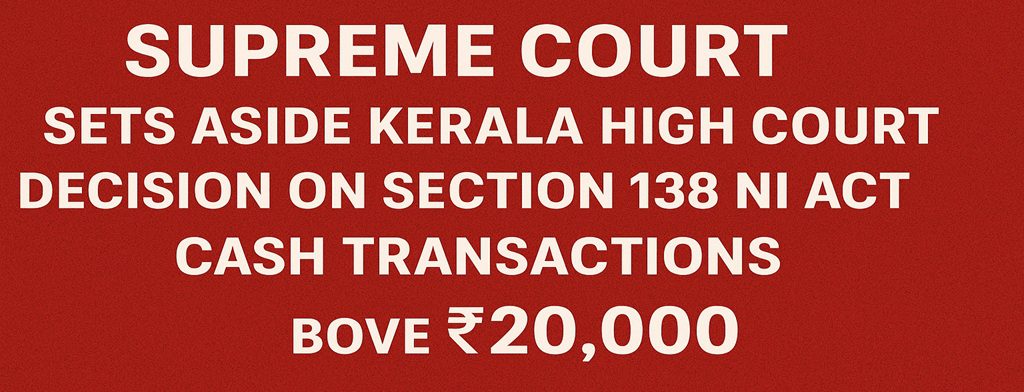 ✔ Cash loans above ₹20,000 remain legally enforceable in Section 138 cases.